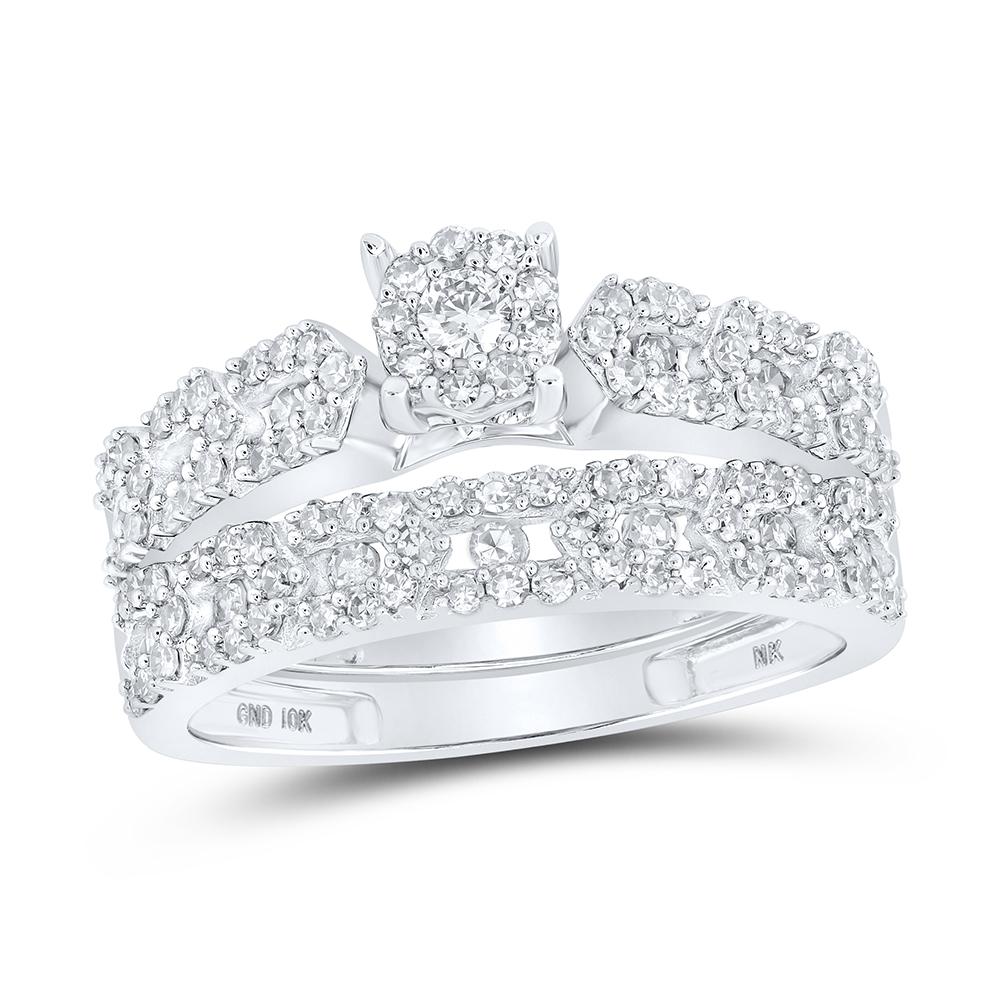 10kt White Gold His Hers Round Diamond Cluster Matching Wedding Set 1-3/8 Cttw