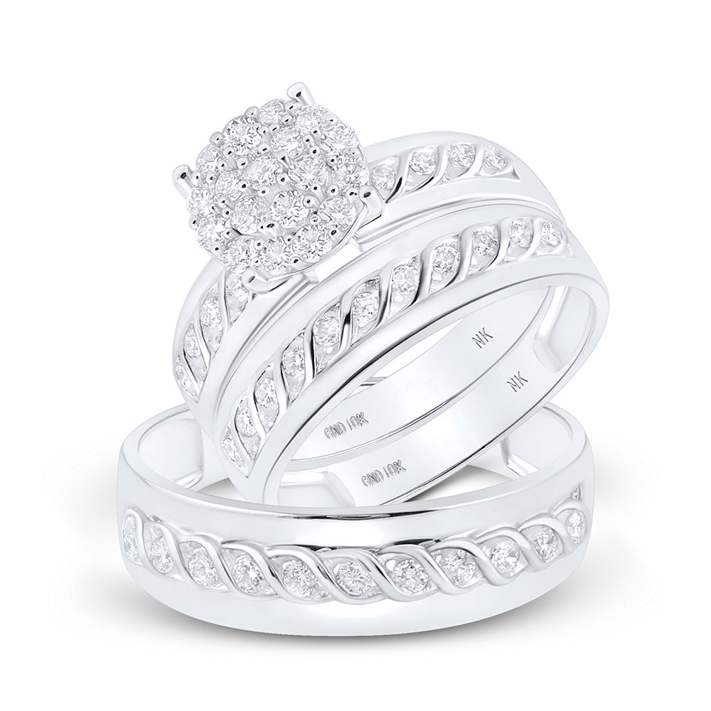 10kt White Gold His Hers Round Diamond Cluster Matching Wedding Set 3/4 Cttw