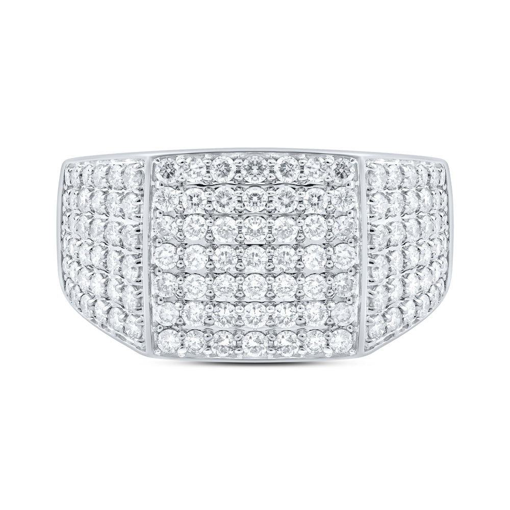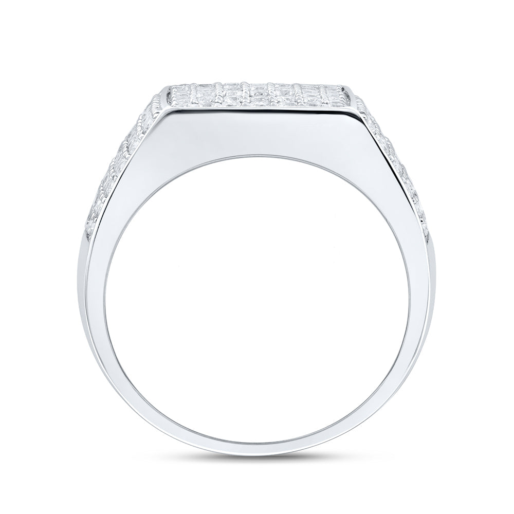10kt White Gold Mens Round Diamond Pave Square Ring 1-1/2 Cttw