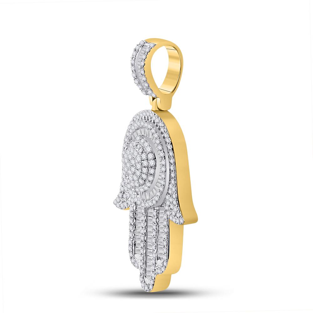 10kt Yellow Gold Mens Baguette Diamond Hamsa Charm Pendant 1 Cttw