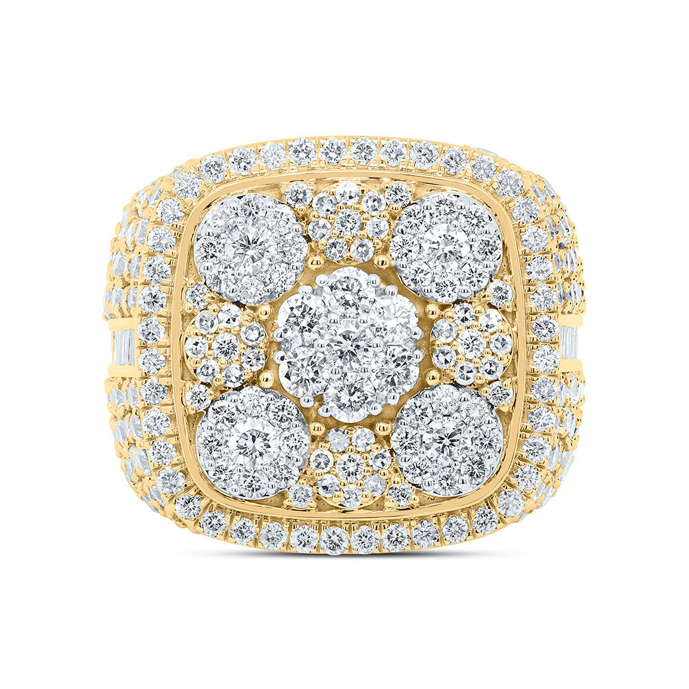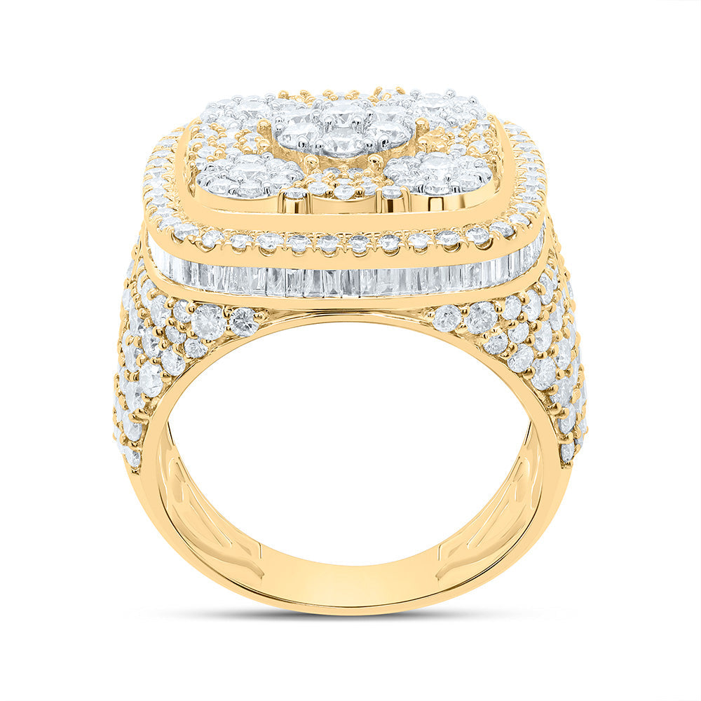 10kt Yellow Gold Mens Baguette Diamond Square Flower Cluster Ring 5-1/4 Cttw