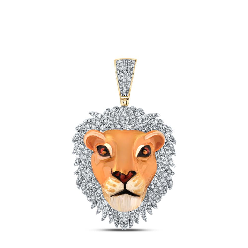 10kt Yellow Gold Mens Round Diamond Lion Face Animal Charm Pendant 1 Cttw
