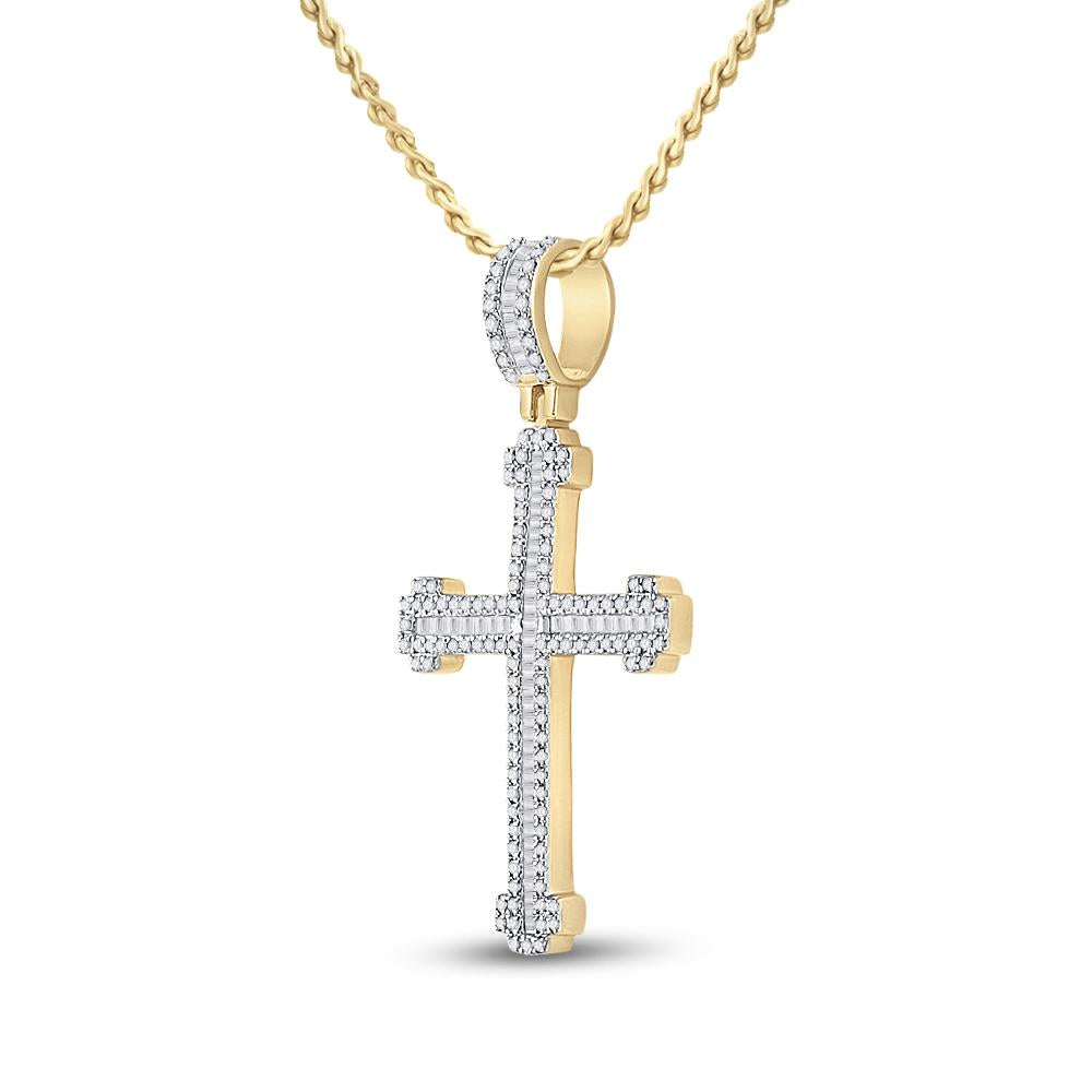 14kt Yellow Gold Mens Round Diamond Cross Charm Pendant 7/8 Cttw