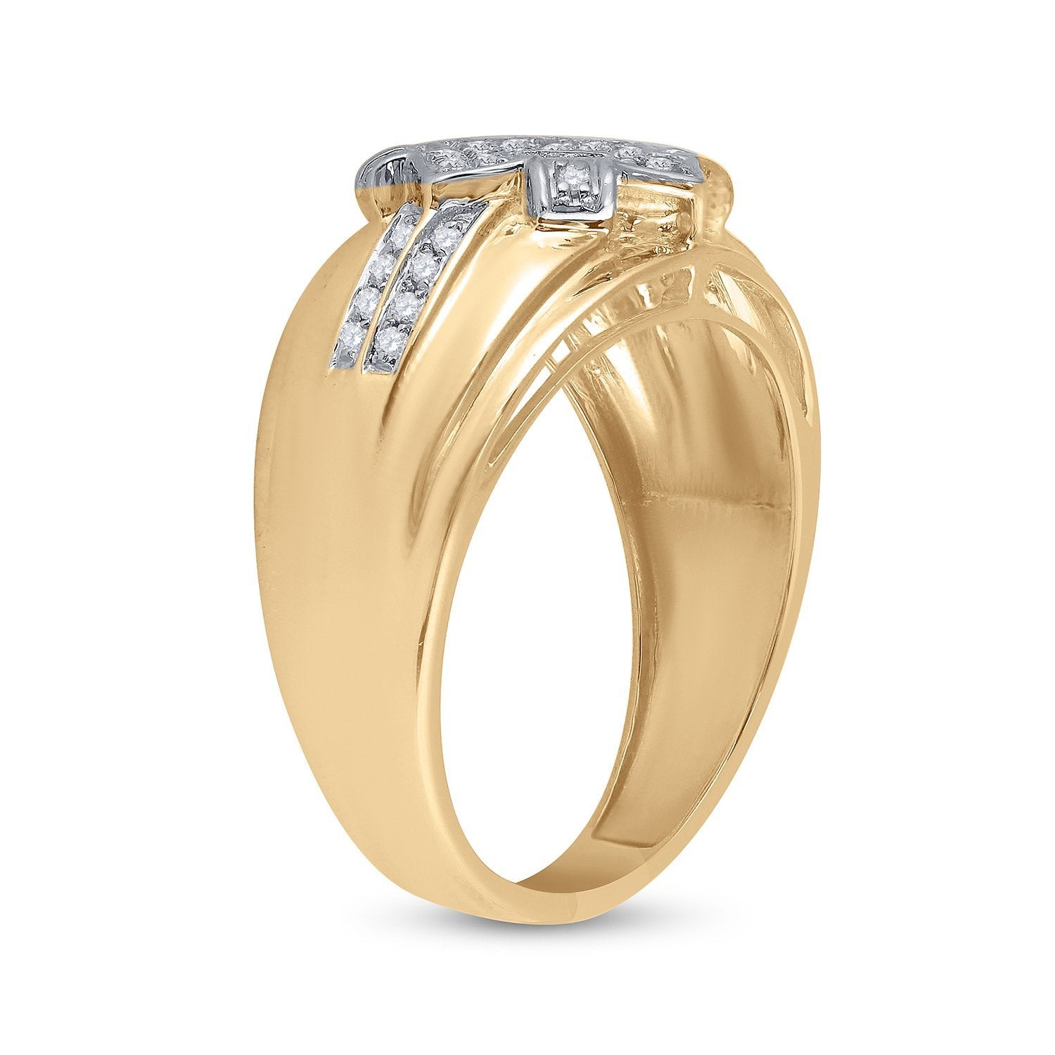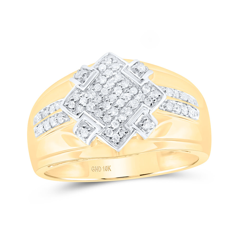 10kt Yellow Gold Mens Round Diamond Offset Square Cluster Ring 1/3 Cttw