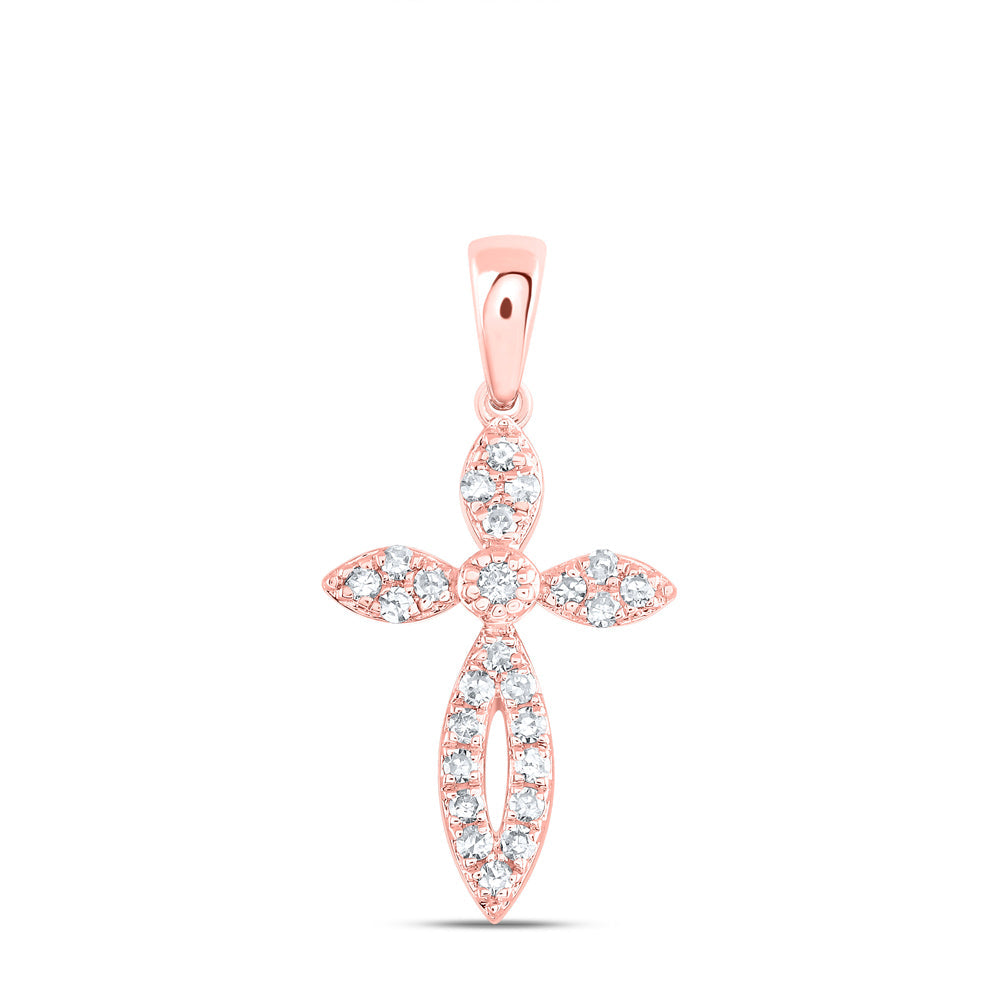 10kt Rose Gold Womens Round Diamond Cross Pendant 1/6 Cttw
