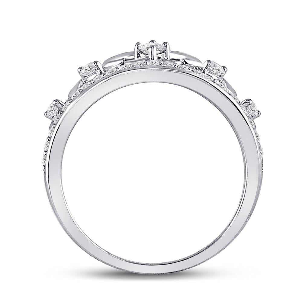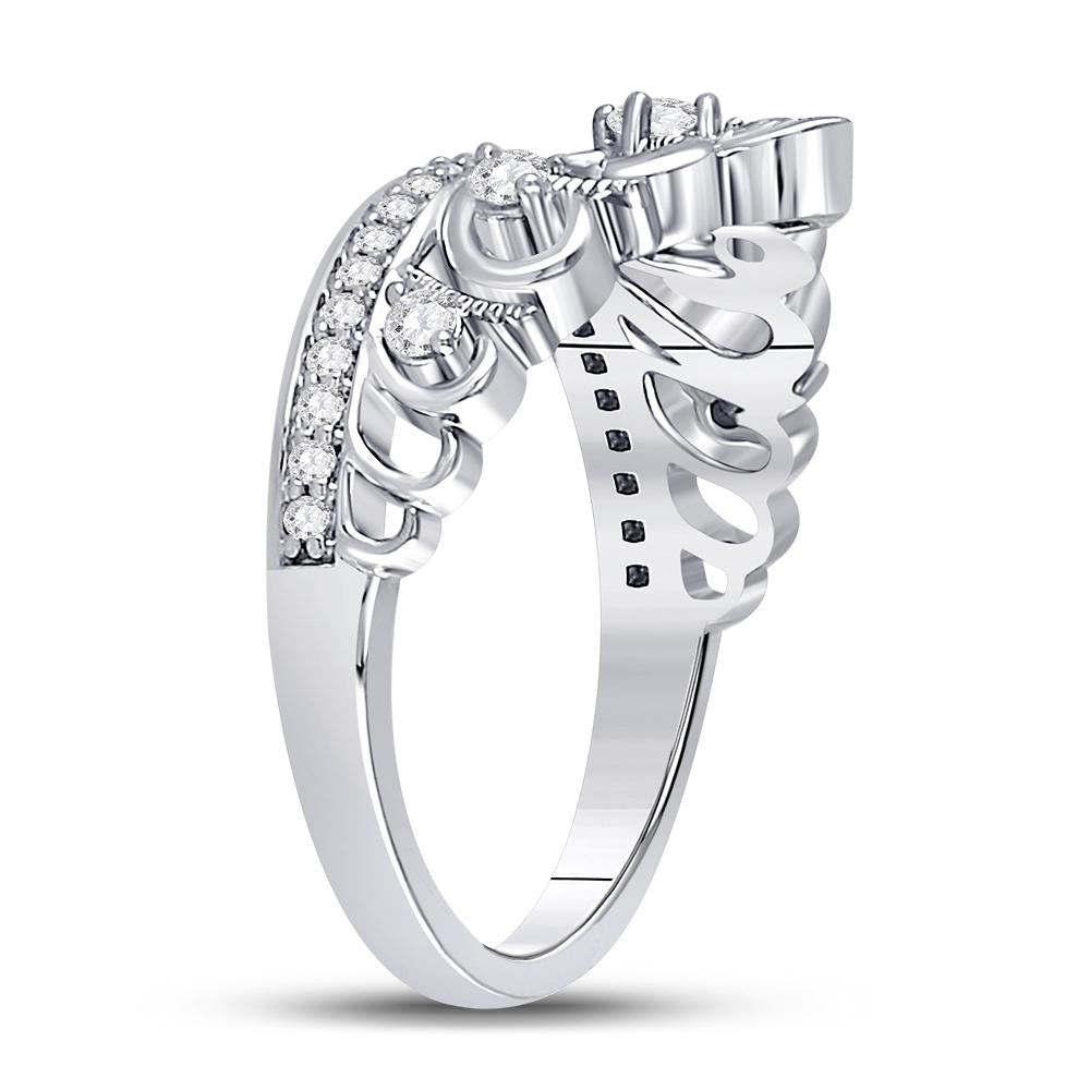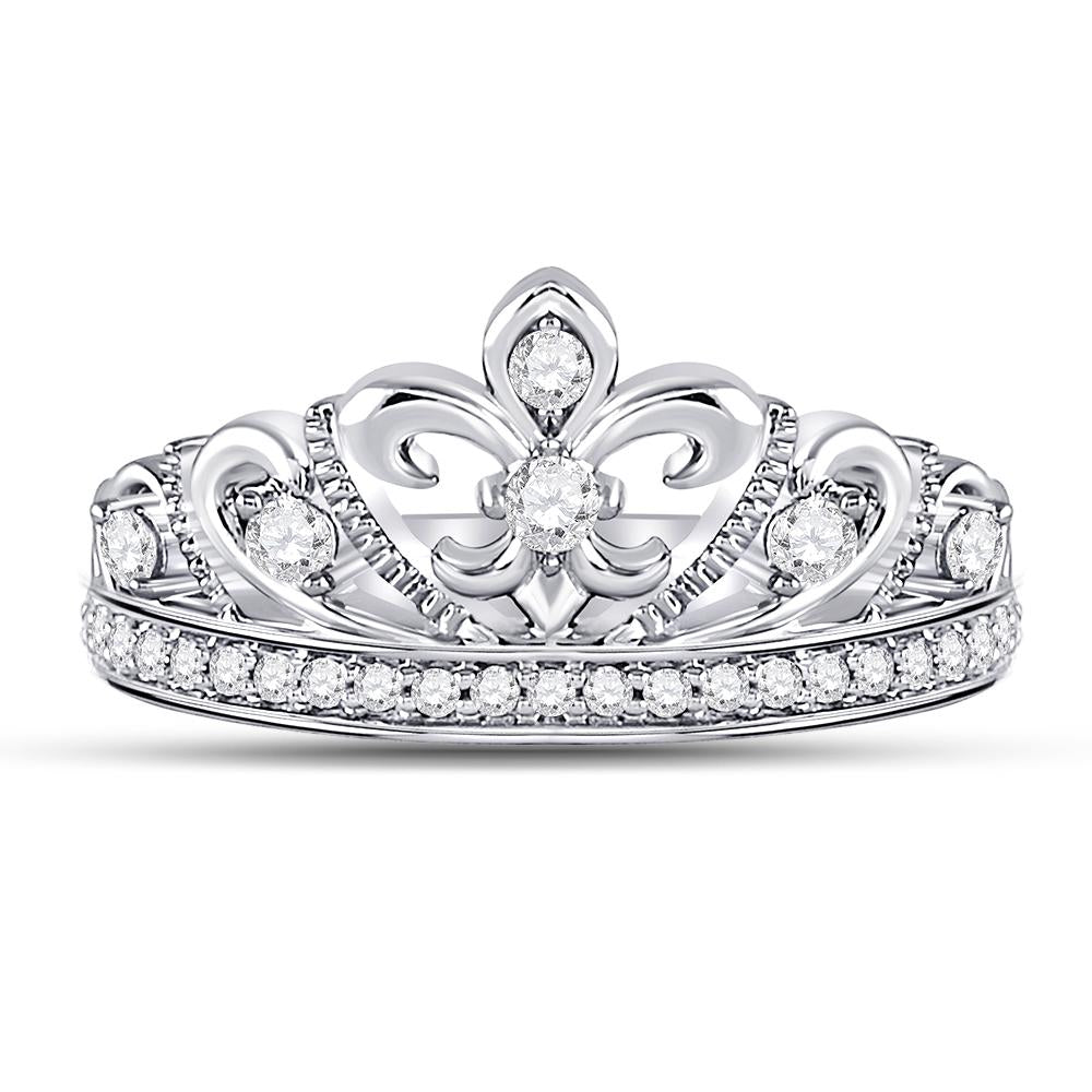 10kt White Gold Womens Round Diamond Fleur-de-lis Crown Ring 1/3 Cttw