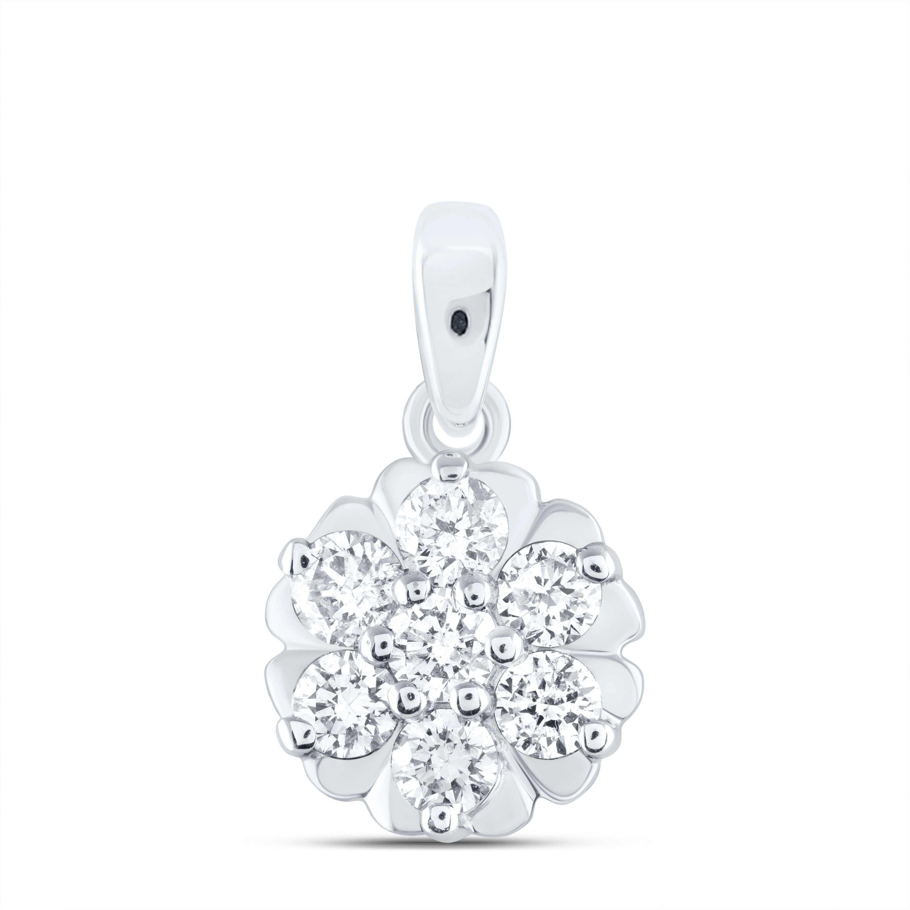 10kt White Gold Womens Round Diamond Flower Cluster Pendant 1/3 Cttw