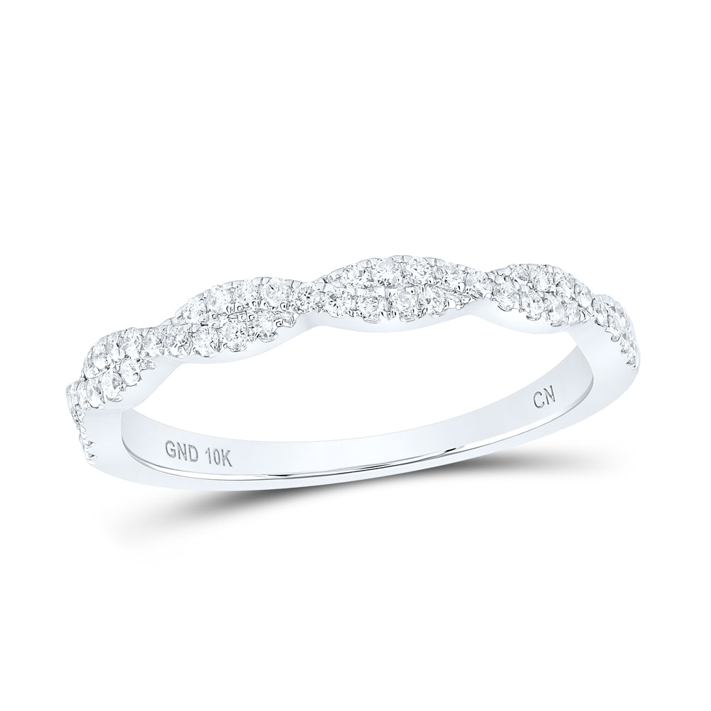 10kt White Gold Womens Round Diamond Woven Twist Stackable Band Ring 1/4 Cttw