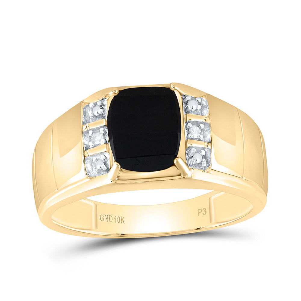 10kt Yellow Gold Mens Round Diamond Black Onyx Solitaire Ring .02 Cttw