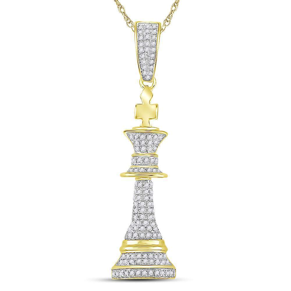 10kt Yellow Gold Mens Round Diamond King Chess Piece Charm Pendant 3/8 Cttw