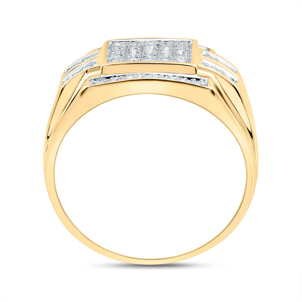 10kt Yellow Gold Mens Round Diamond Square Cluster Ring 1/3 Cttw