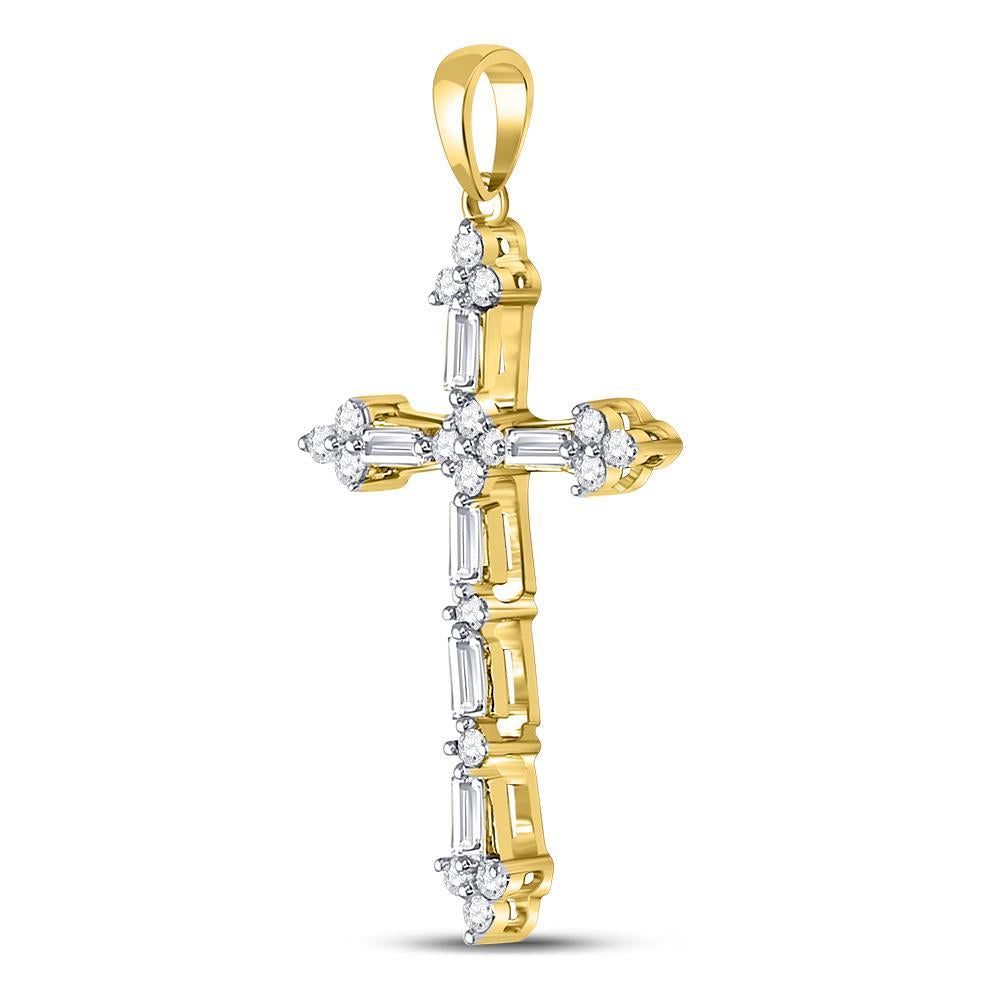10kt Yellow Gold Womens Round Baguette Diamond Cross Pendant 1/2 Cttw