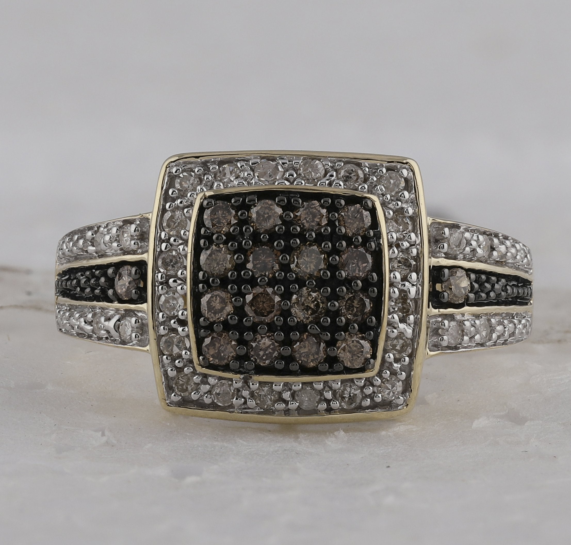 10kt Yellow Gold Womens Round Brown Diamond Square Cluster Ring 1/2 Cttw