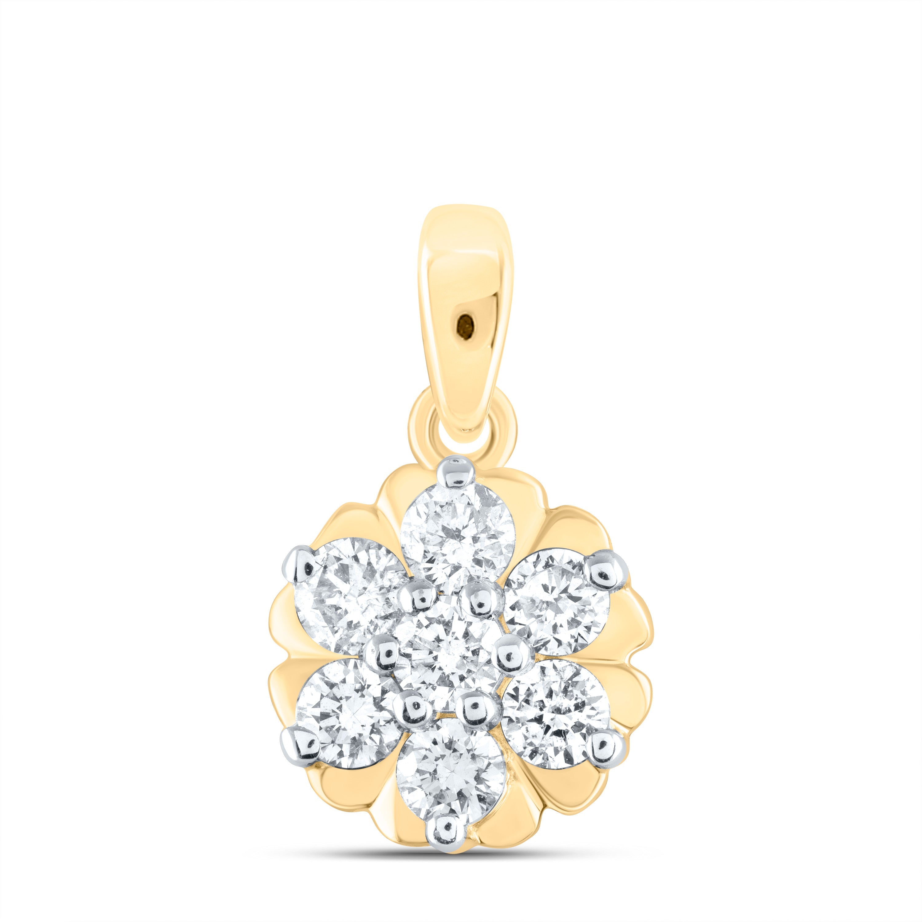 10kt Yellow Gold Womens Round Diamond Flower Cluster Pendant 1/3 Cttw