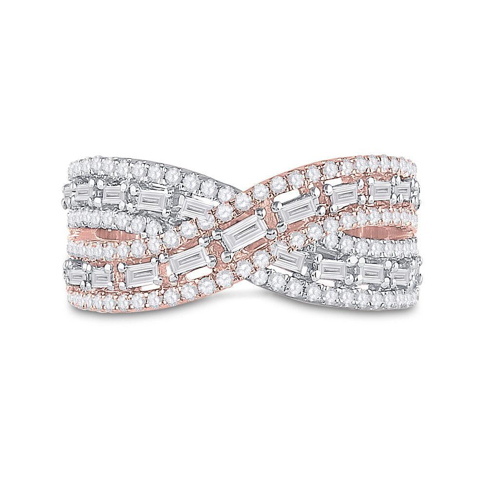 14kt Two-tone Gold Womens Baguette Diamond Crossover Band Ring 3/4 Cttw