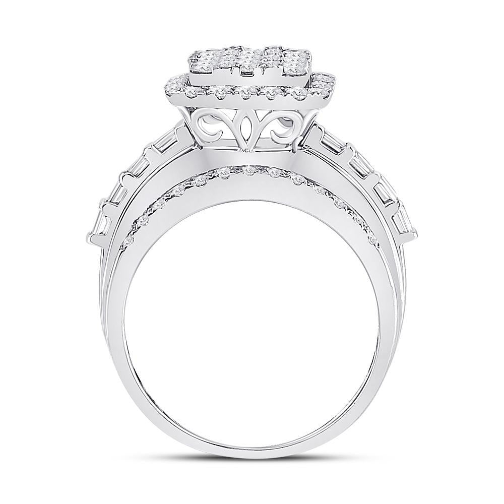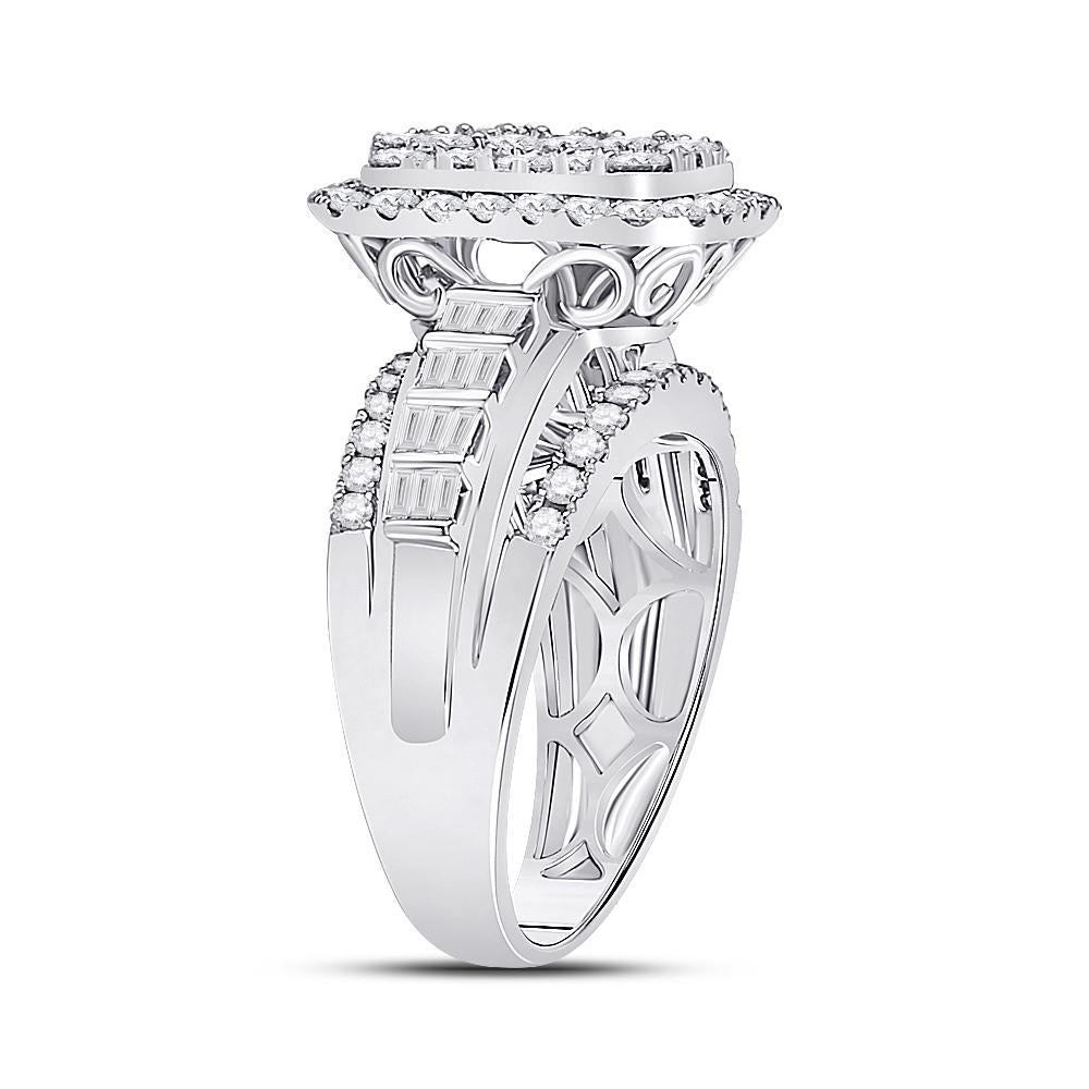 14kt White Gold Womens Round Diamond Rectangle Cluster Ring 1-3/4 Cttw