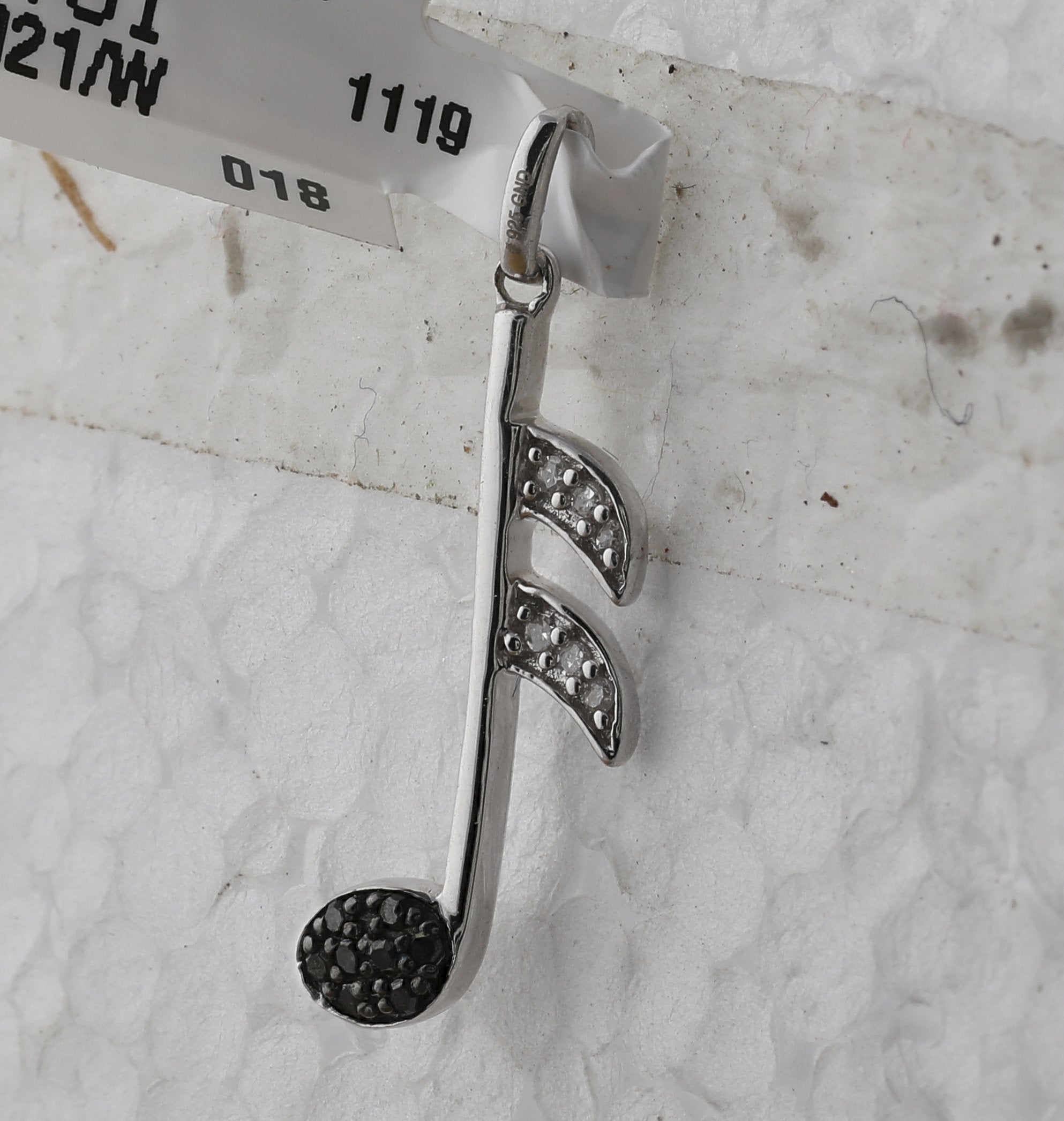 Sterling Silver Womens Round Black Color Enhanced Diamond Music 16th Note Pendant 1/20 Cttw