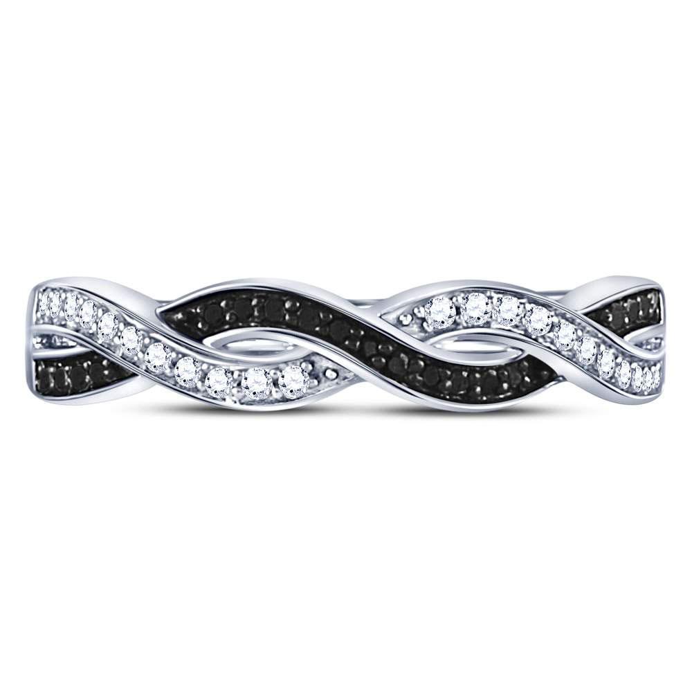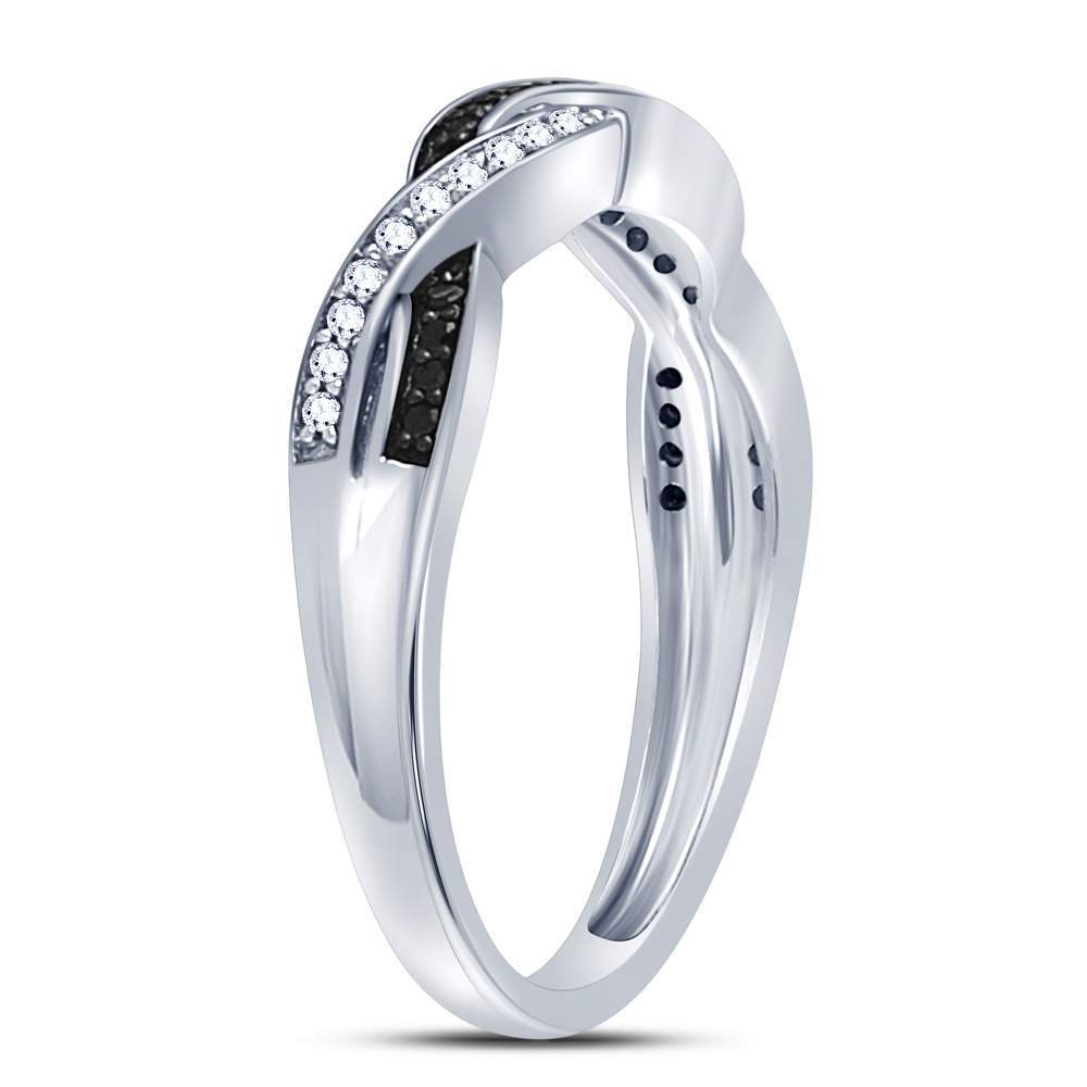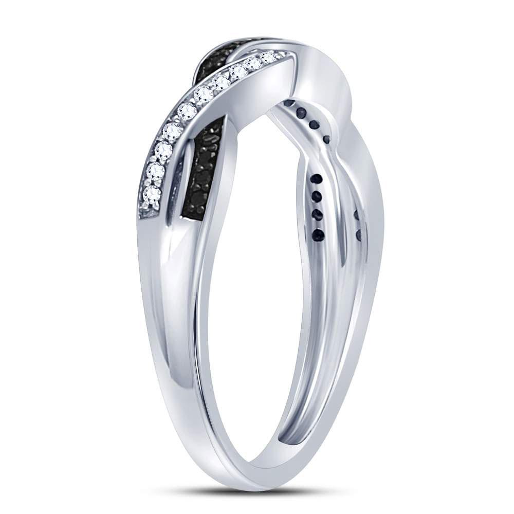 Sterling Silver Womens Round Black Color Enhanced Diamond Woven Band Ring 1/6 Cttw