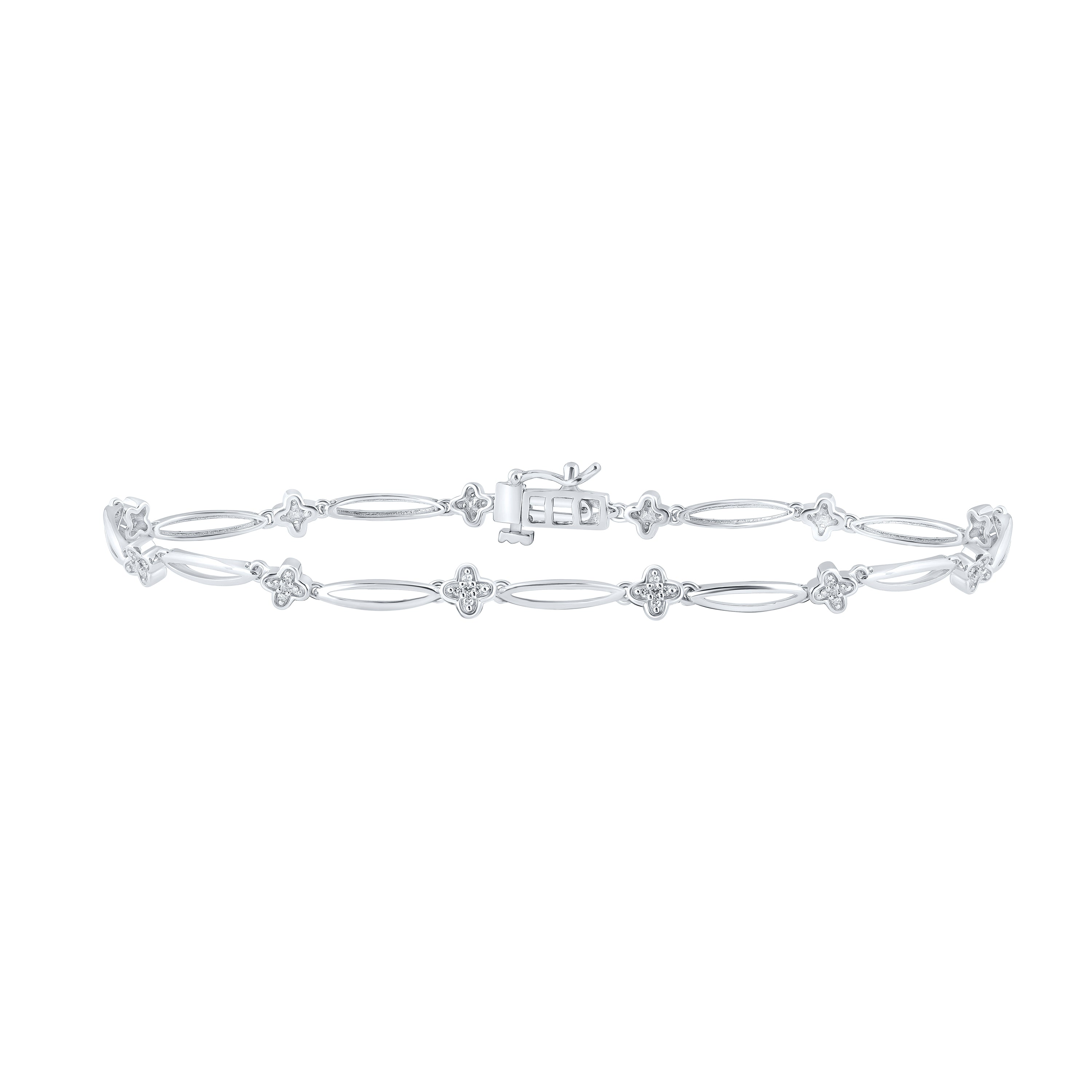Sterling Silver Womens Round Diamond Fashion Bracelet 1/6 Cttw