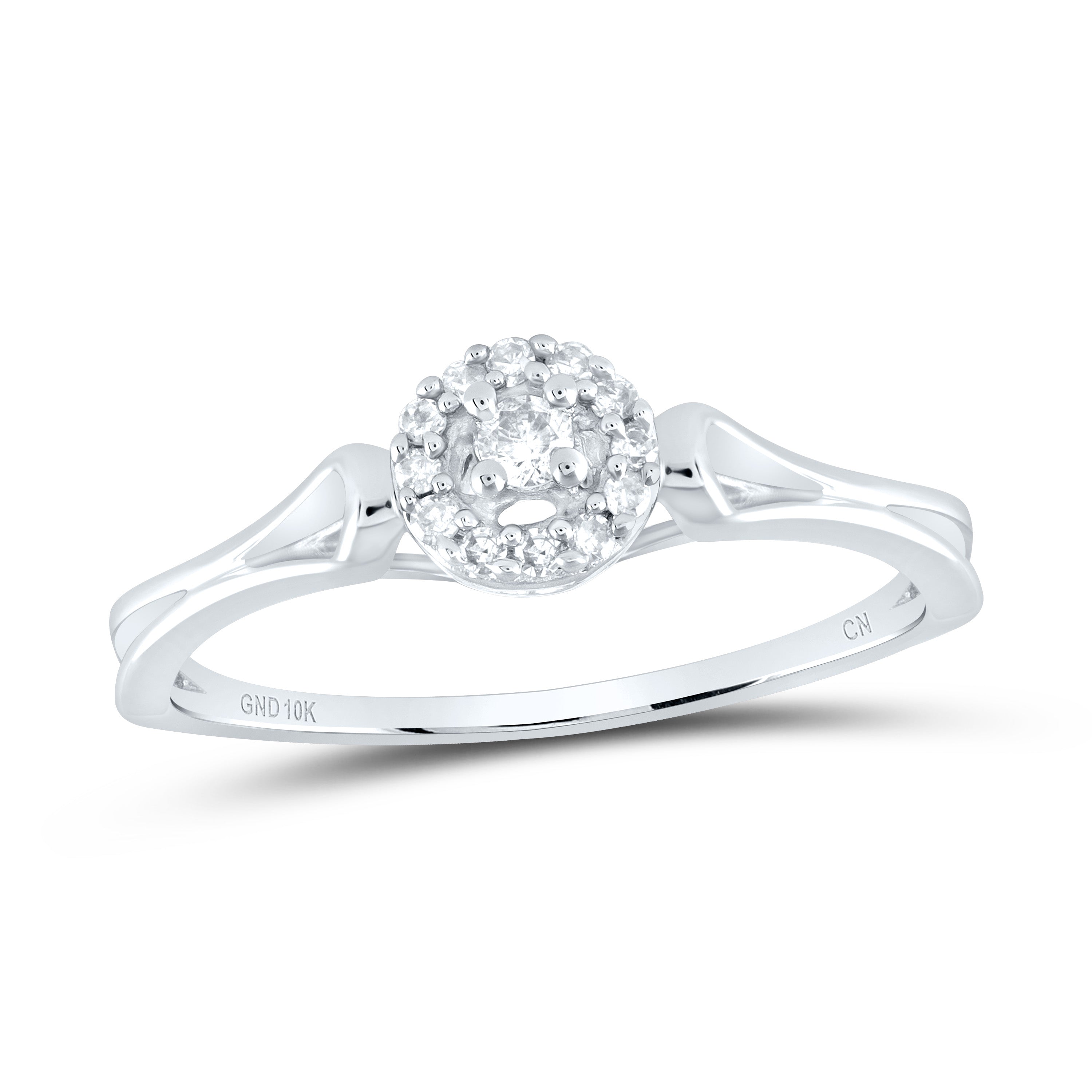 10kt White Gold Womens Round Diamond Solitaire Promise Ring 1/10 Cttw