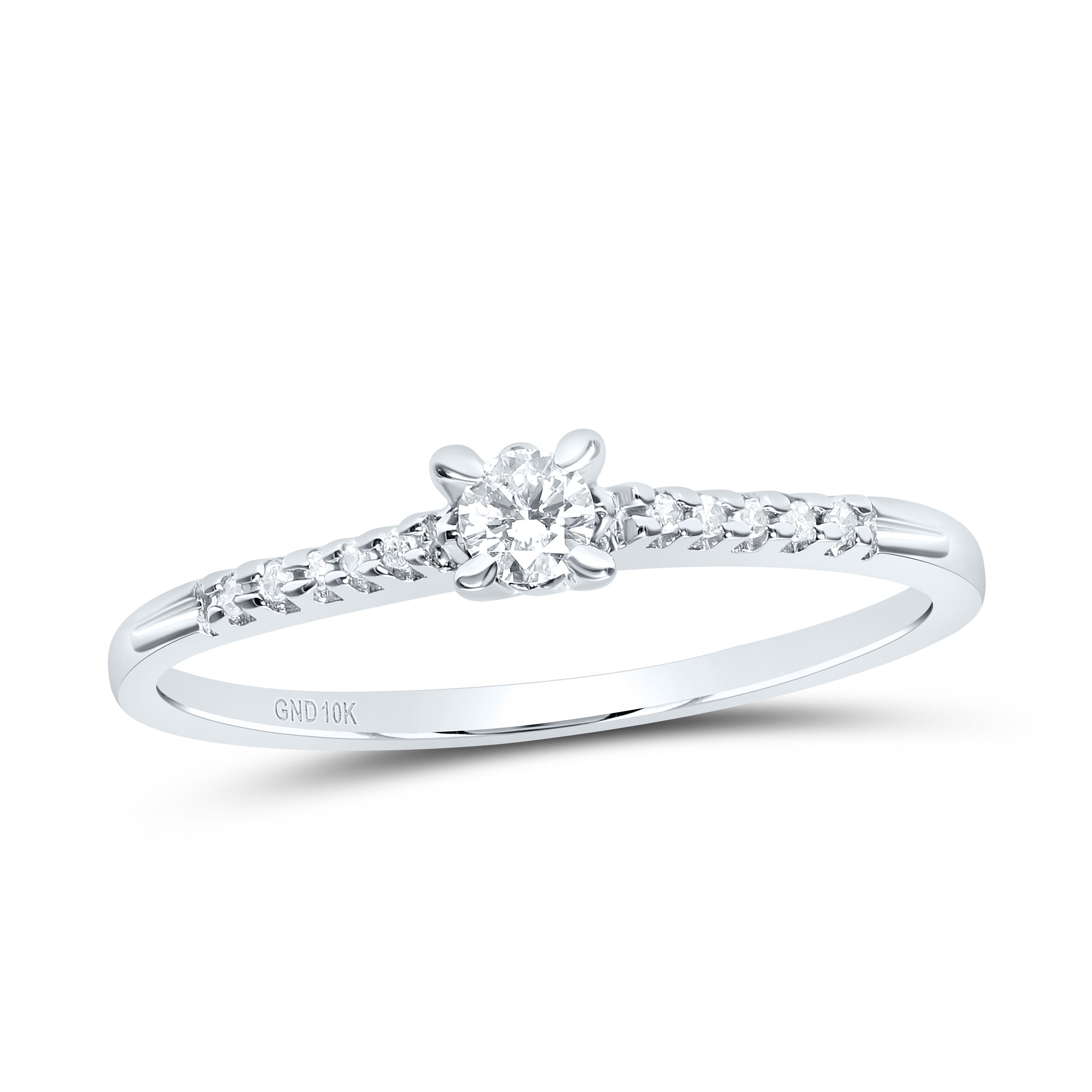 10kt White Gold Womens Round Diamond Solitaire Promise Ring 1/8 Cttw