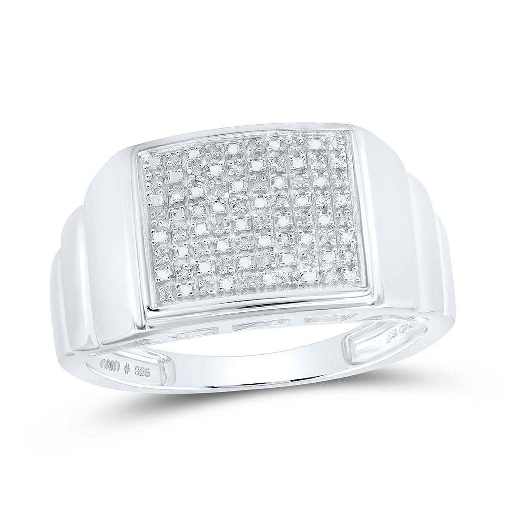 Sterling Silver Mens Round Diamond Cluster Ring 1/10 Cttw