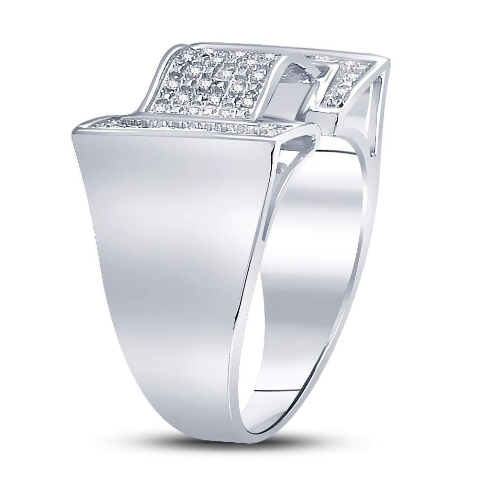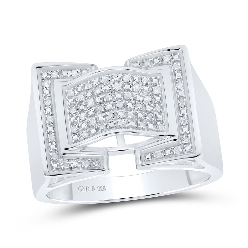 Sterling Silver Mens Round Diamond Domed Rectangle Cluster Ring 1/8 Cttw