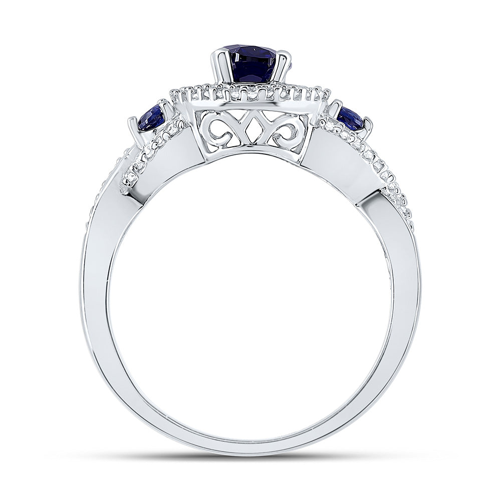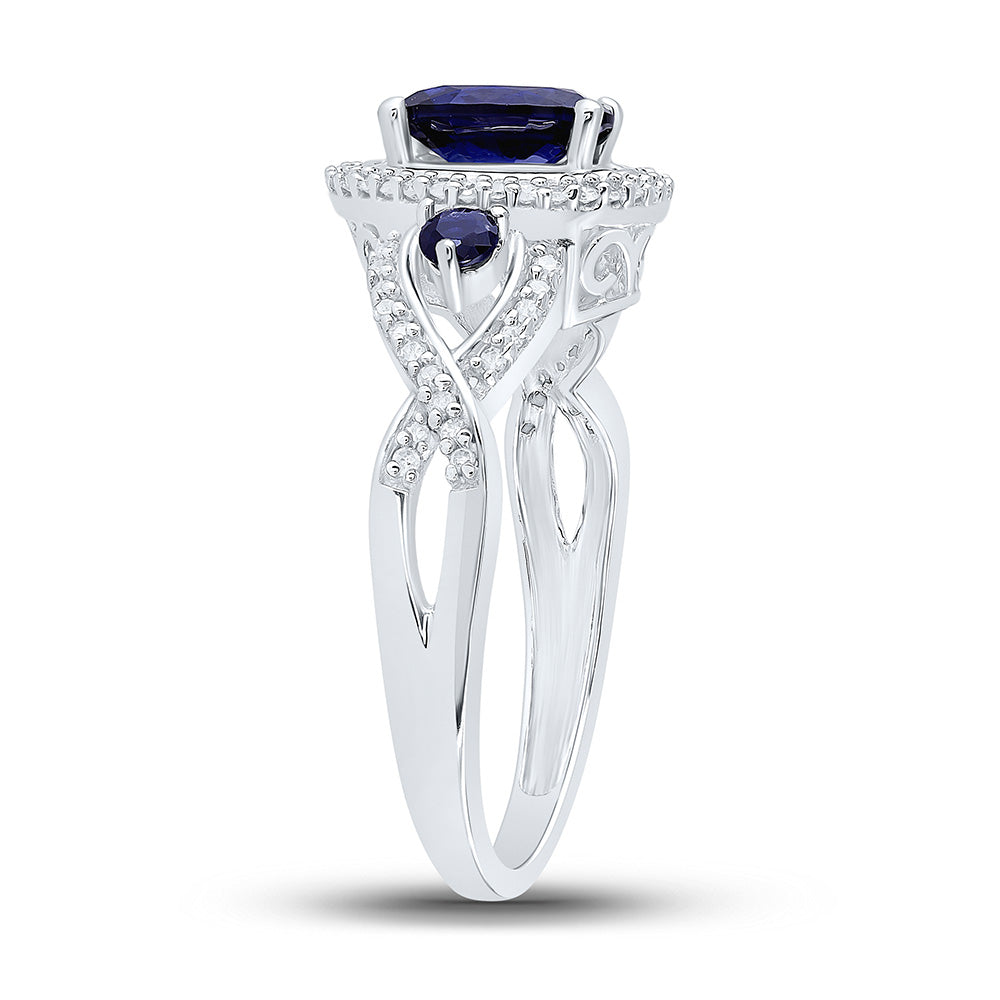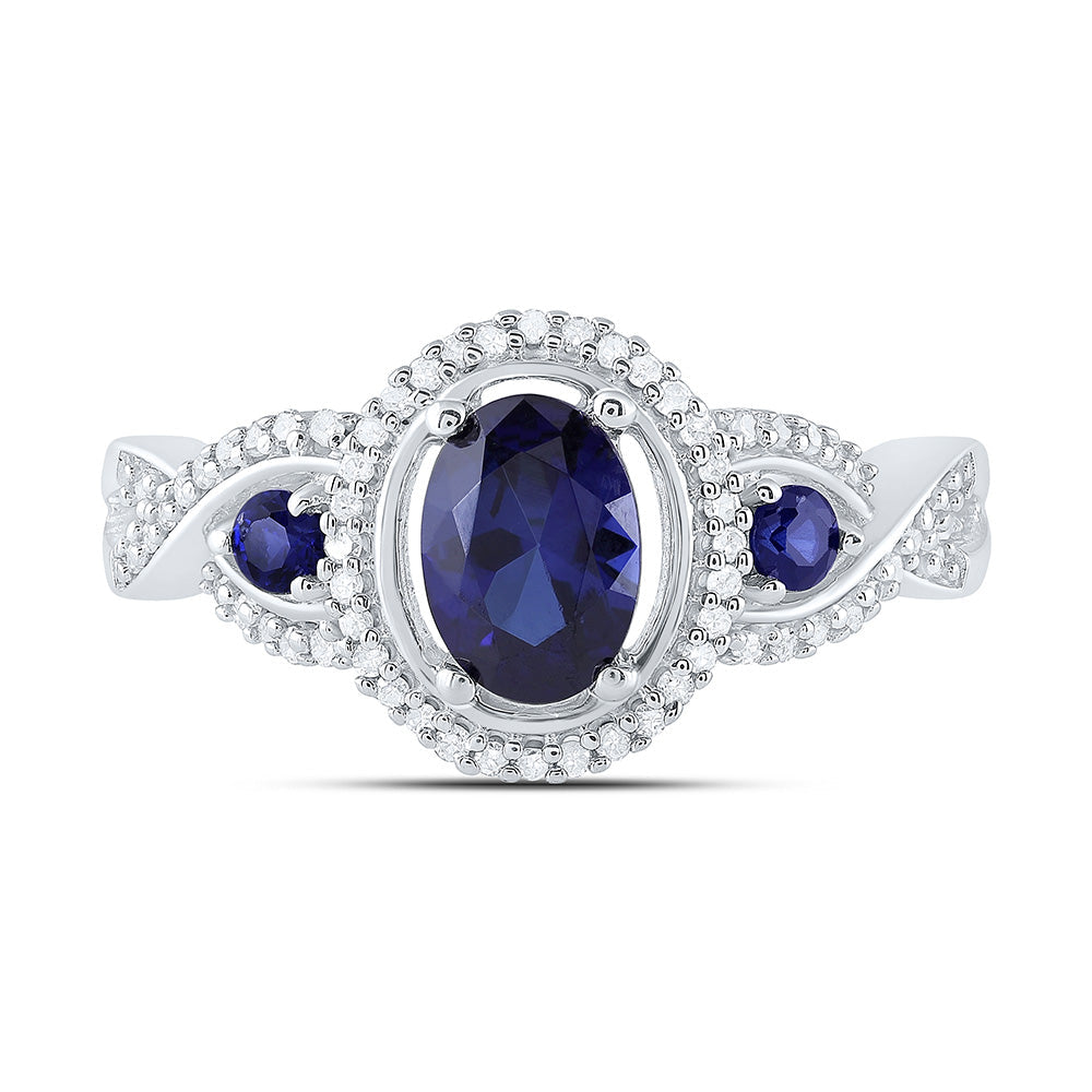 10kt White Gold Womens Oval Synthetic Blue Sapphire 3-stone Ring 1-1/2 Cttw