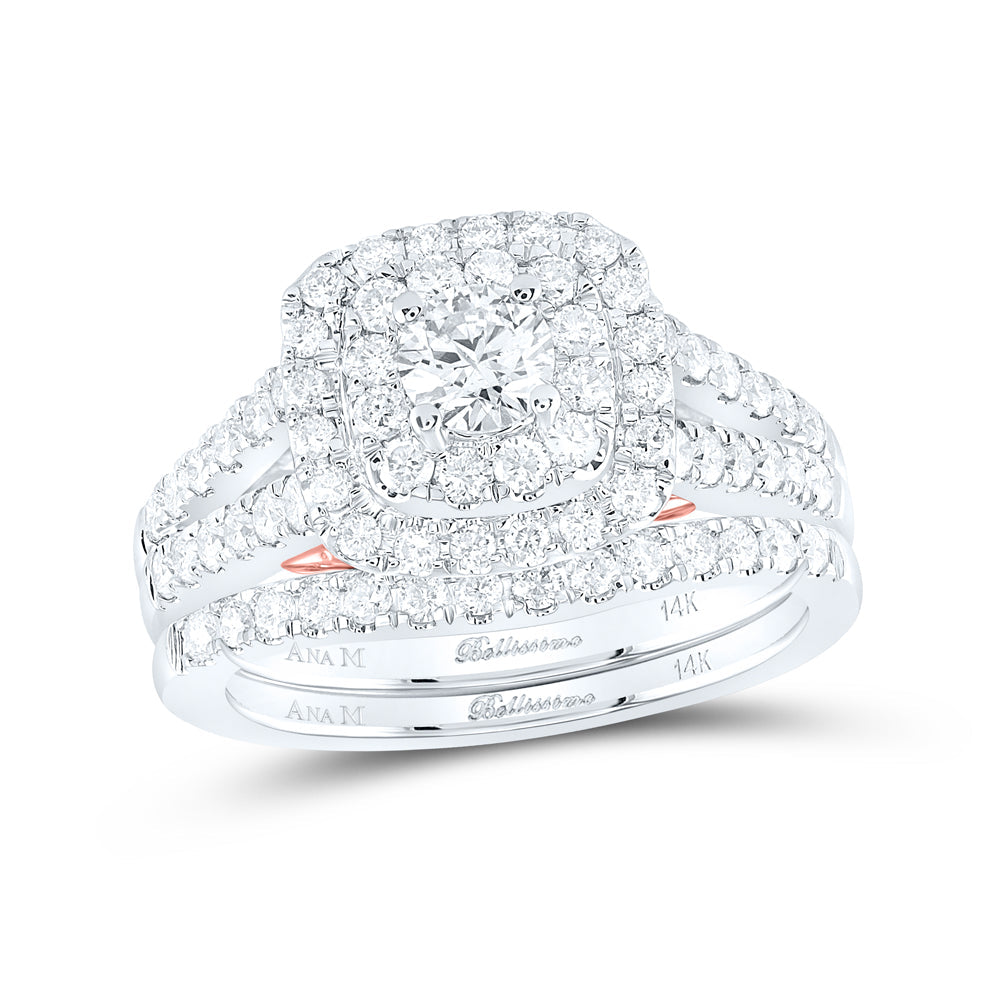 14kt Two-tone Gold Round Diamond Bridal Wedding Ring Band Set 1-1/4 Cttw