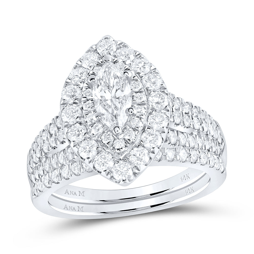 14kt White Gold Marquise Diamond Halo Bridal Wedding Ring Band Set 2 Cttw