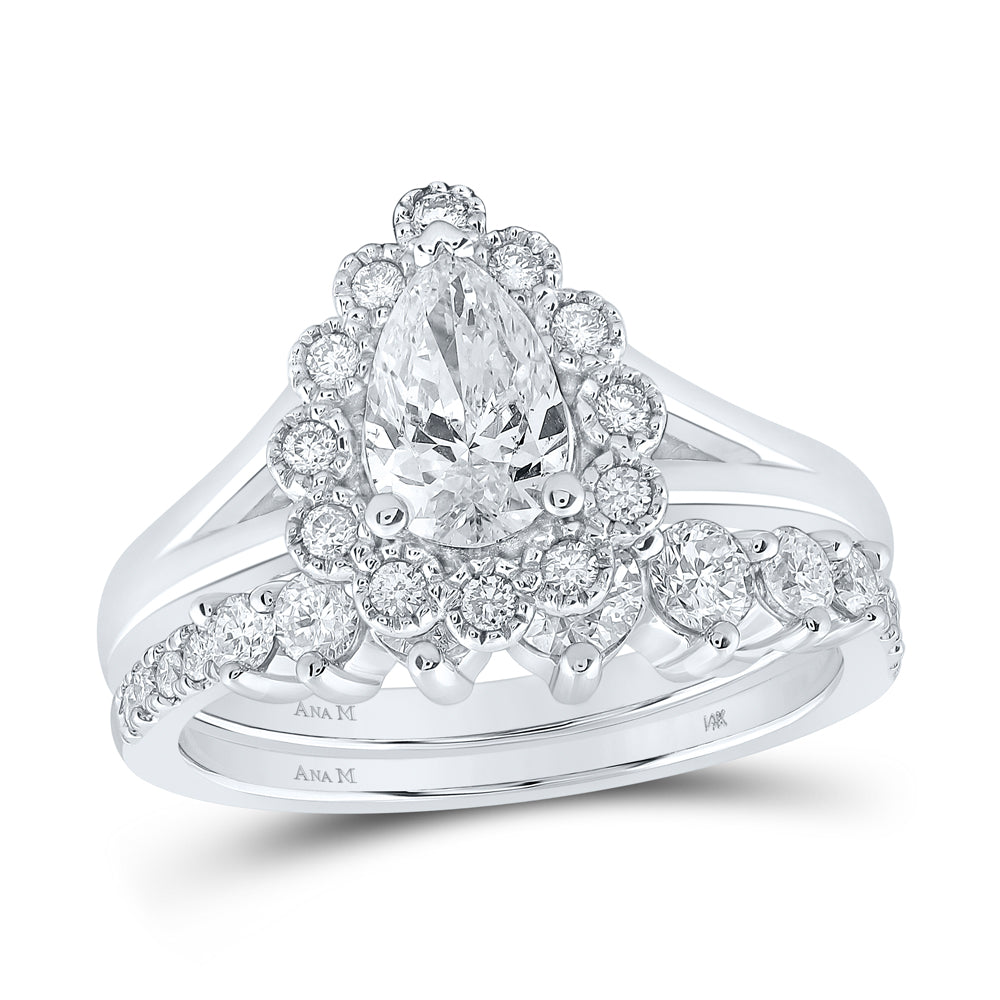 14kt White Gold Pear Diamond Halo Bridal Wedding Ring Band Set 1-1/2 Cttw