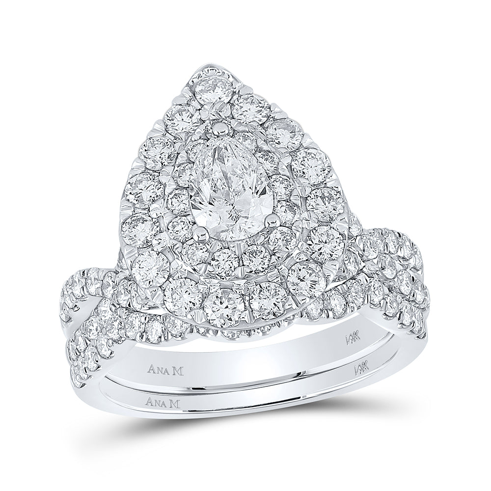 14kt White Gold Pear Diamond Halo Bridal Wedding Ring Band Set 2 Cttw