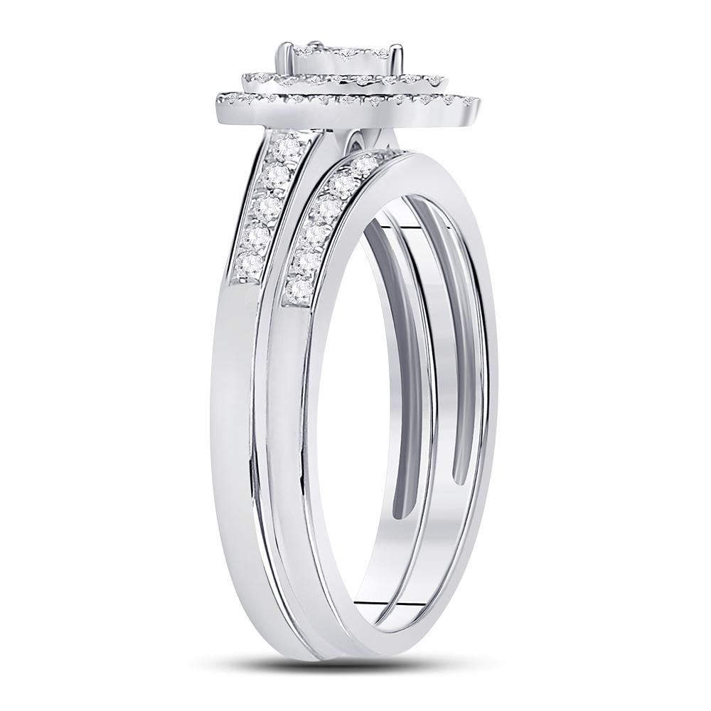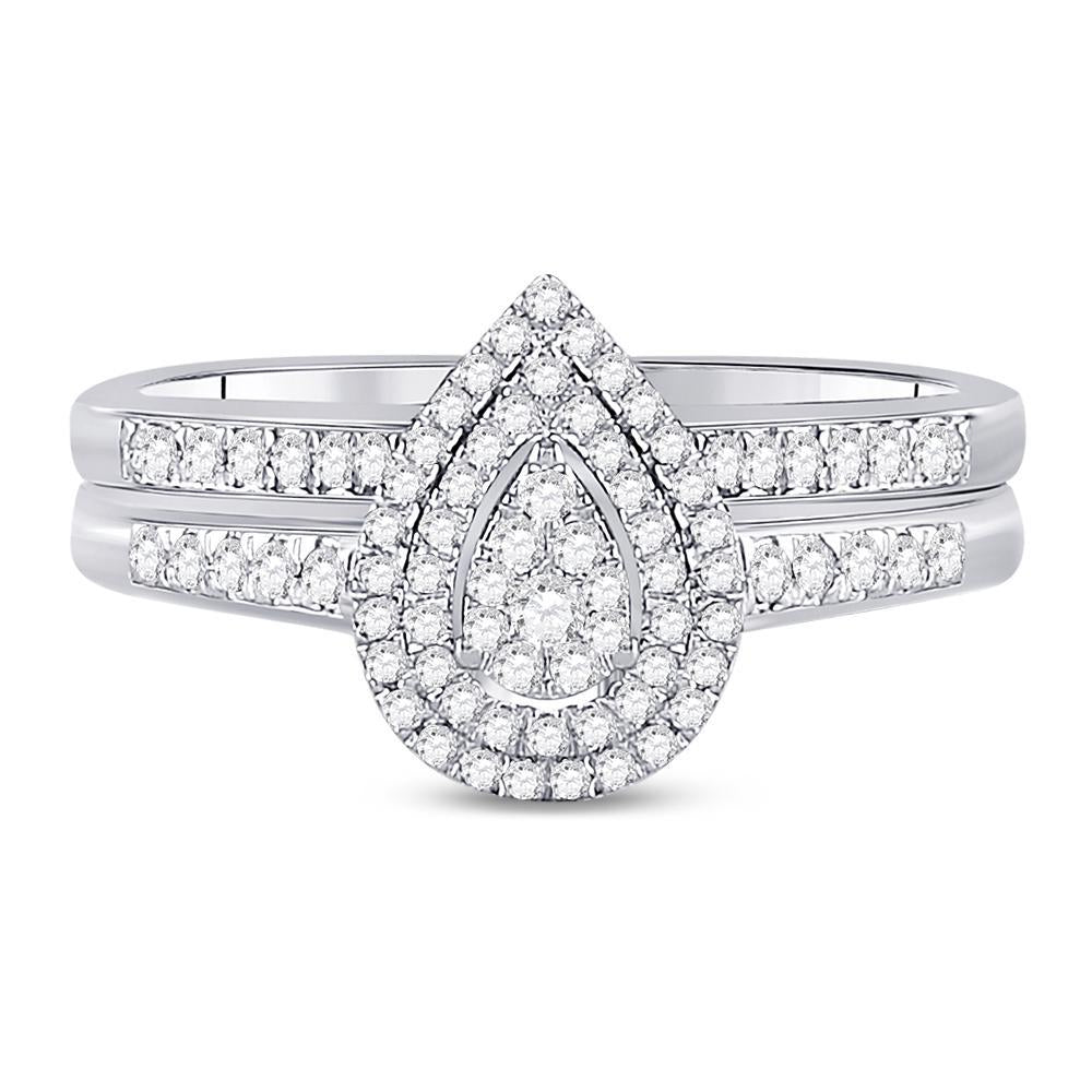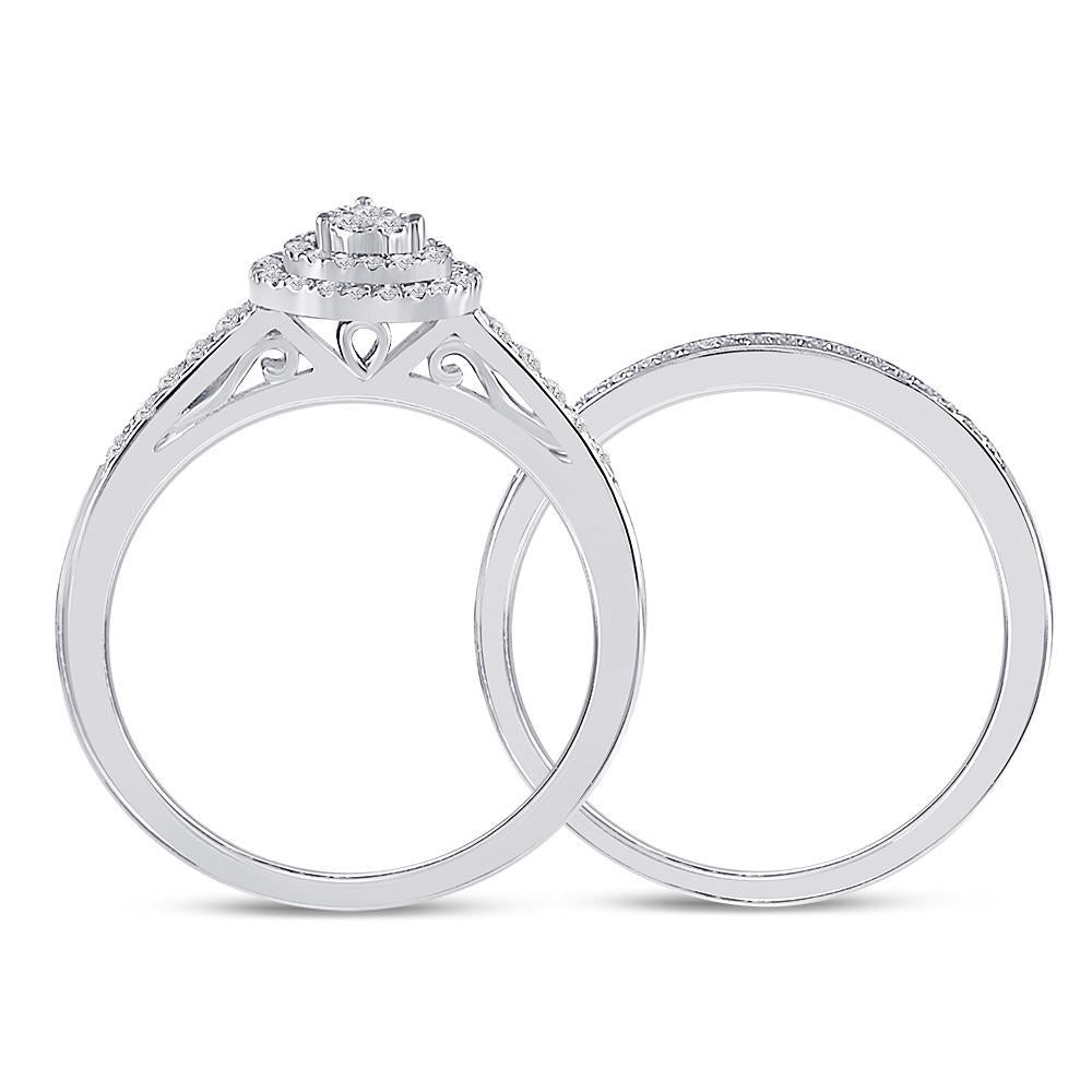 10kt White Gold Round Diamond Pear-shape Bridal Wedding Ring Band Set 1/3 Cttw